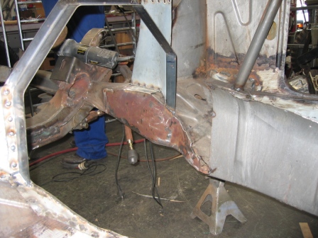 The next stage was closing off the butchered front subframe and sorting the transmission tunnel.
