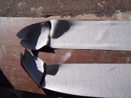 The picture above right shows the template shapes necessary to form the angled join, with a