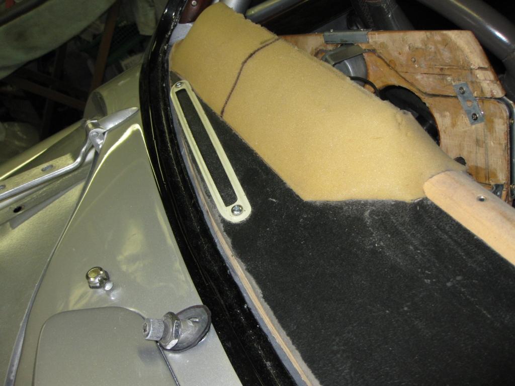The picture on the right shows the spanner access for the dash top, accessed via the glove box. I used an old furniture castor fitting which is no more than a plate with a thread. I'll post a picture of that at a later date and just before the dash is bolted in but when the glass is in, just in case it need a modification.